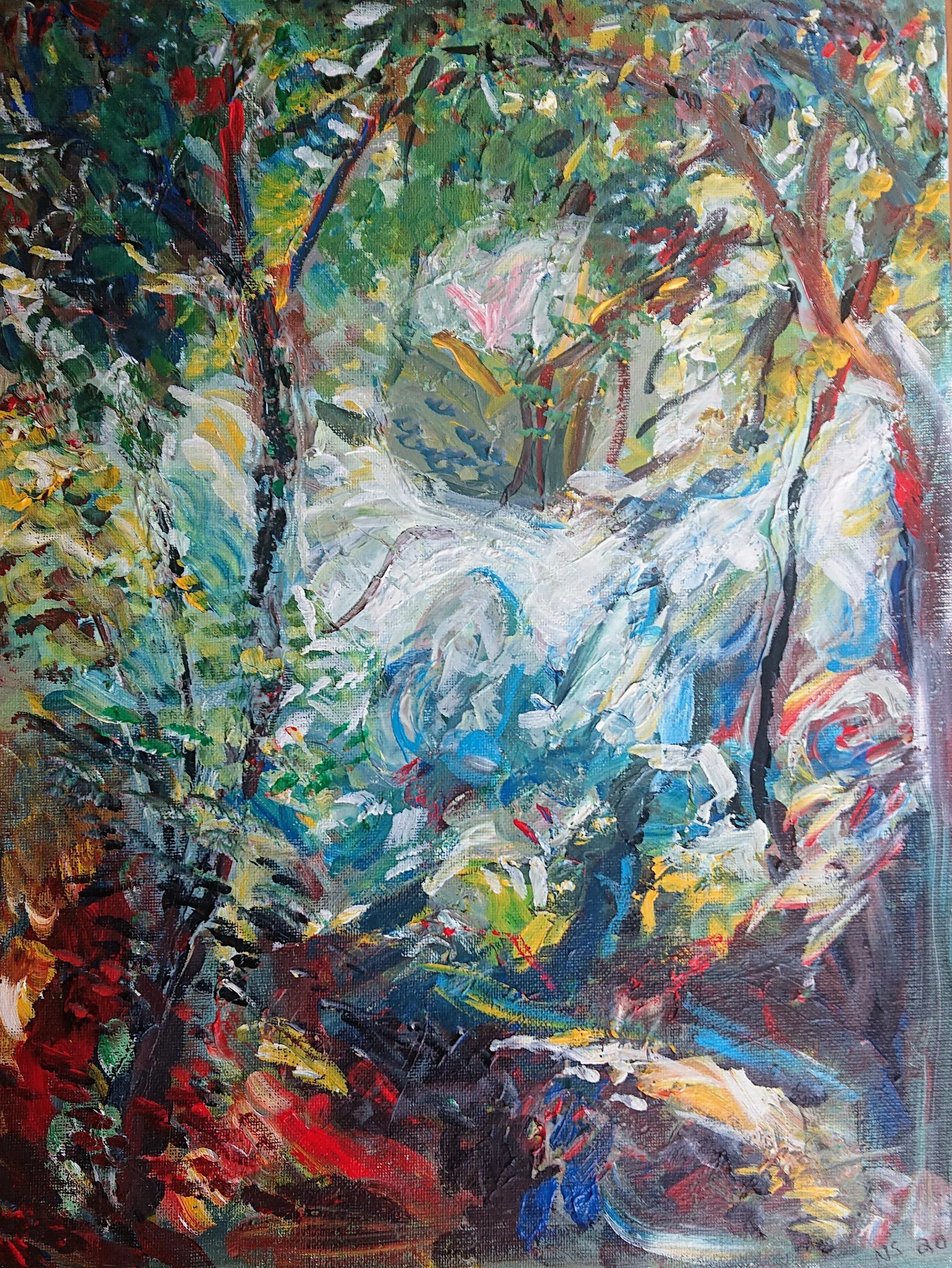 Rushing waters. Acrylic on paper. Western PA hiking. 2023.
