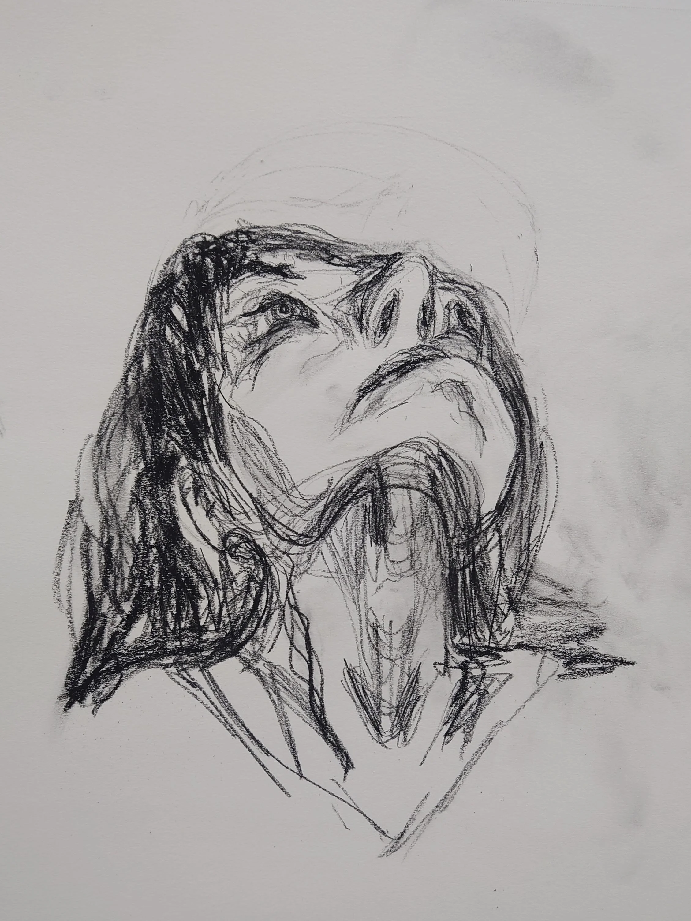 Look up. Charcoal on paper, quick sketch, in class. 2025.