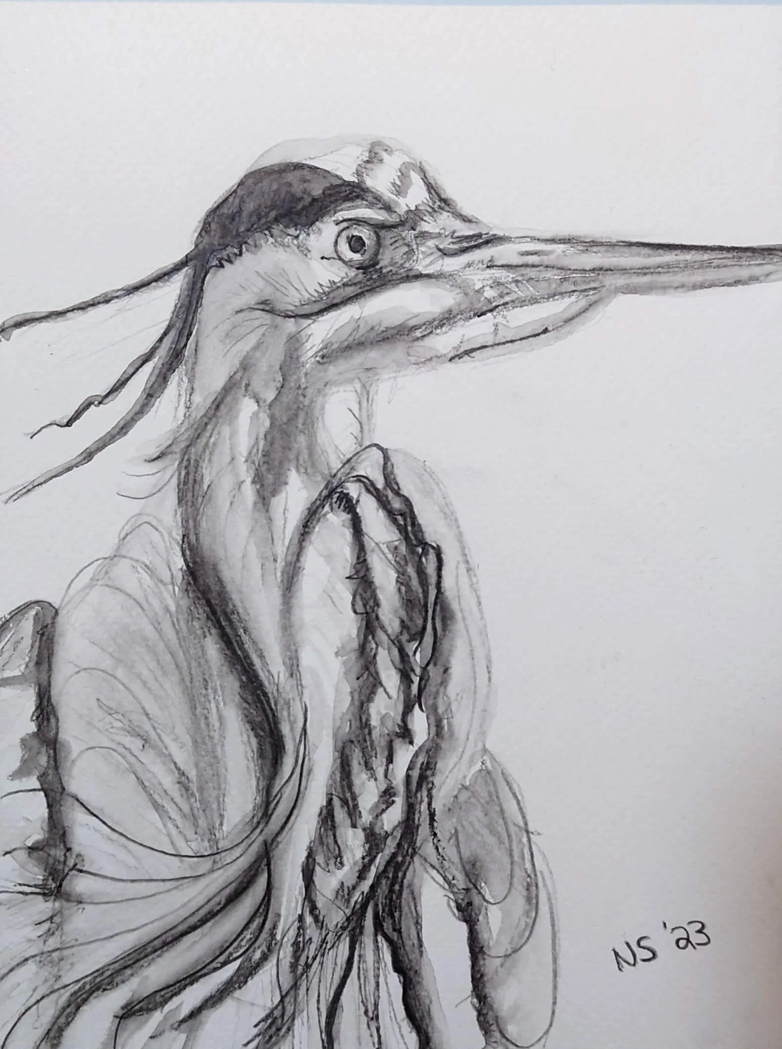 Heron. Watercolor pencil on paper. 2023.